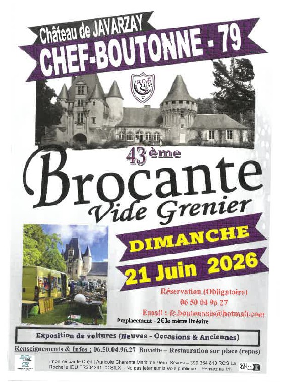 Réservation obligatoire au 06 50 04 96 27 ou fc.boutonnais@hotmail.com